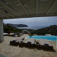 Swimming pool, bar and lounge with great views to Agrari and Elia beach, garden, BBQ
